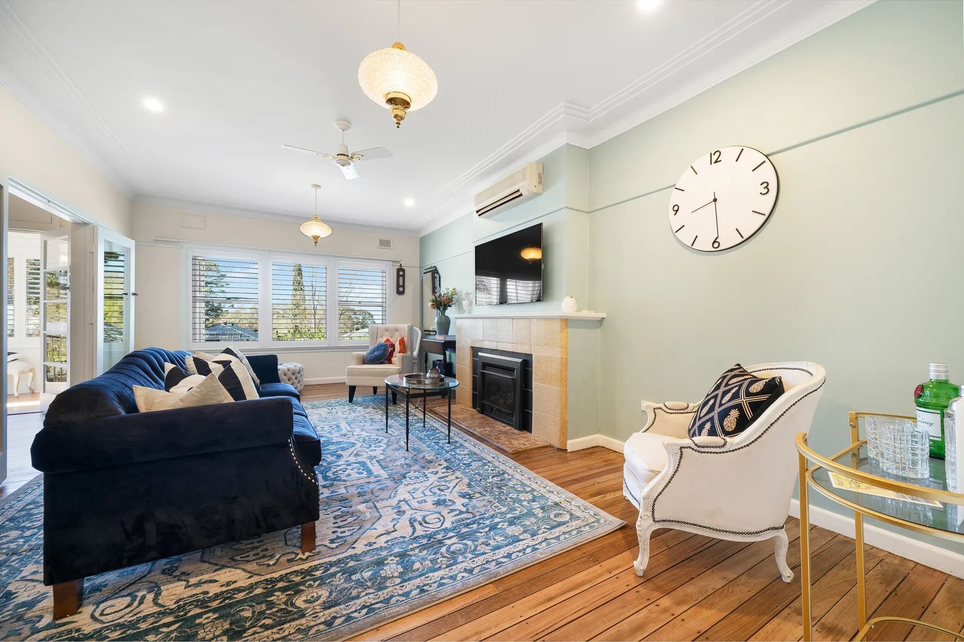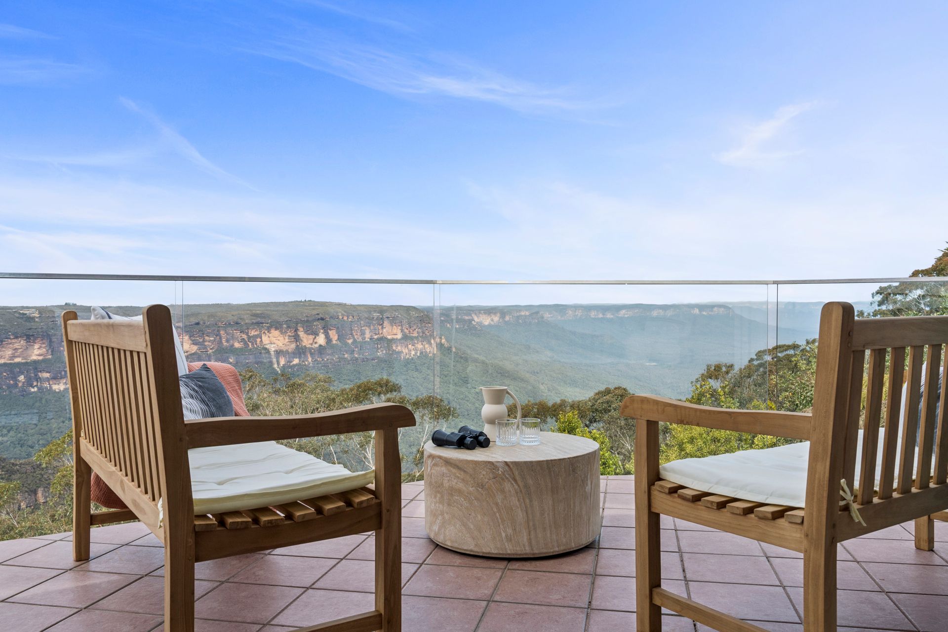 Stylish architectural Leura retreat with fireplace, garden, and effortless relaxation