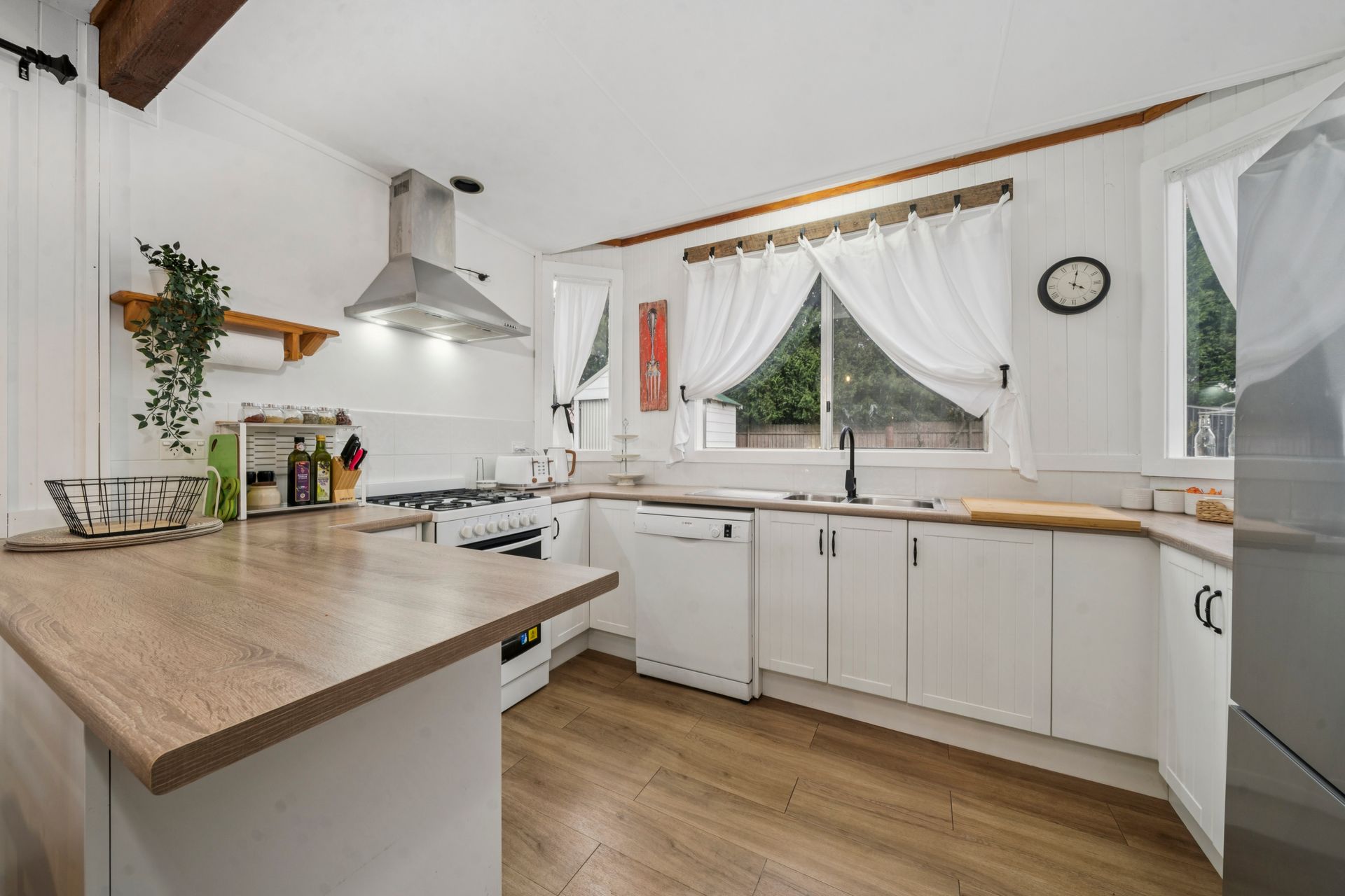 The open-plan living area boasts a gas log fireplace and Smart TV, while a slow combustion fireplace adds authentic mountain charm in winter. Culinary enthusiasts will love the fully equipped kitchen with oven, cooktop, dishwasher, microwave, fridge, toaster, and kettle. Step outside to a spacious deck to enjoy sweeping mountain views, or unwind in the private garden or on the sun-drenched verandah.