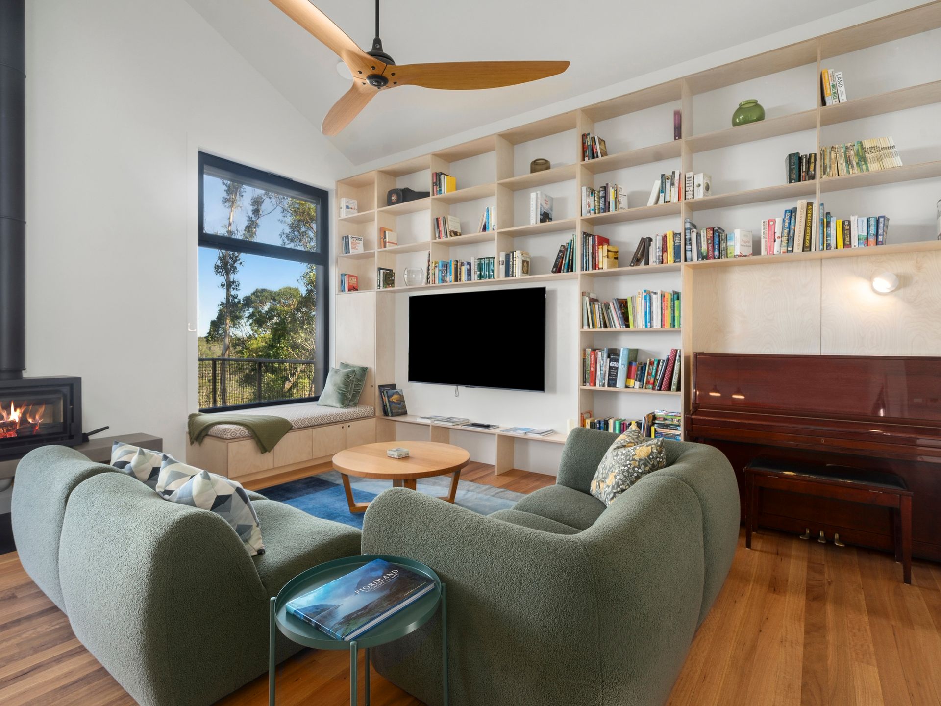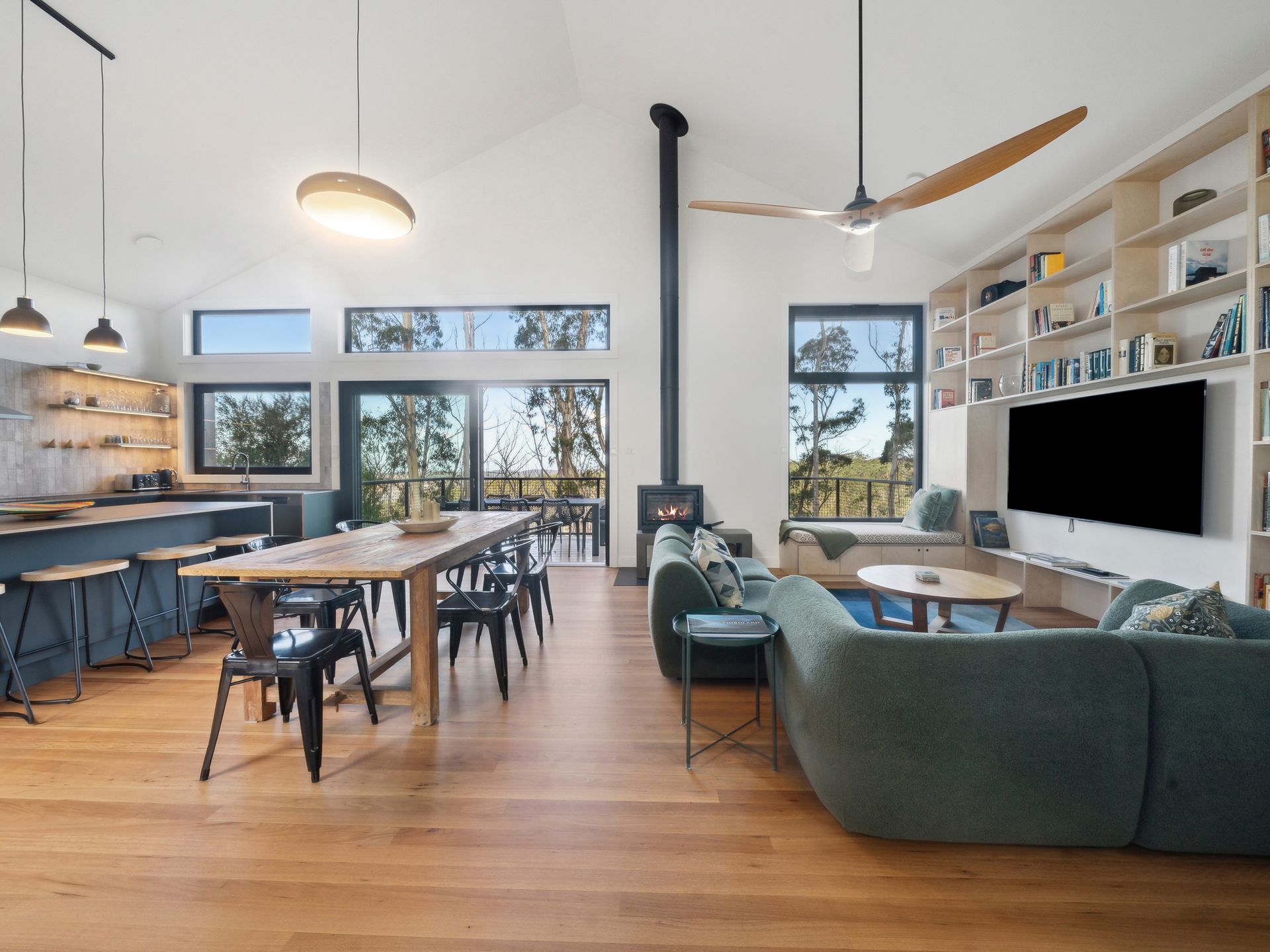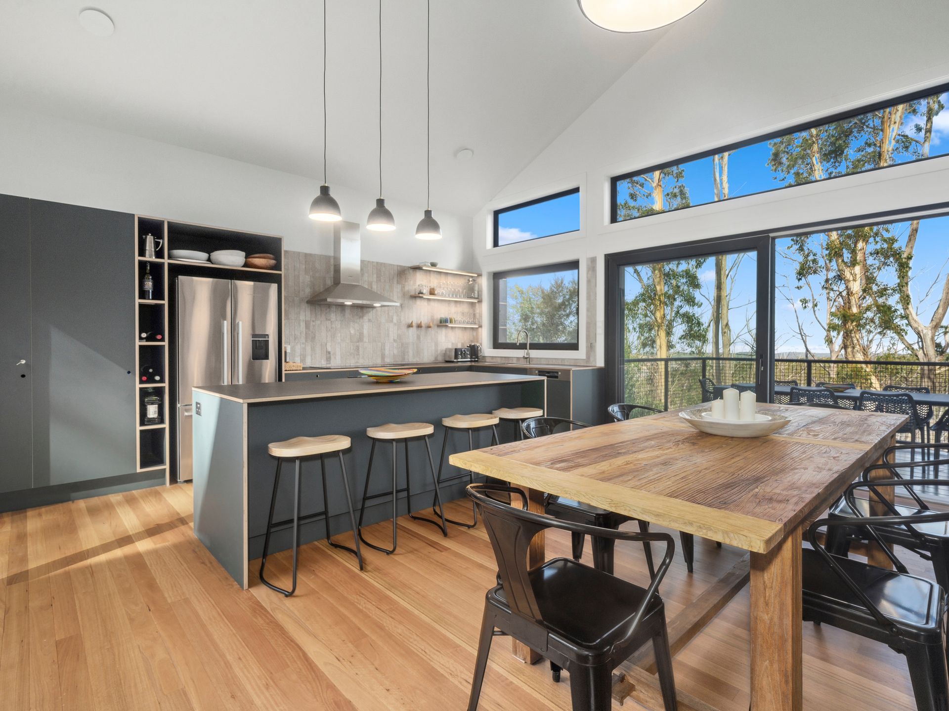 Birdsong Blackheath encapsulates the essence of serenity amidst the breathtaking Blue Mountains bushland. Step onto the expansive deck to soak in the magical natural surroundings and enjoy peaceful moments with panoramic views. During cooler months, cosy up by the slow combustion fireplace — firewood is supplied from May through September — while reverse cycle air conditioning ensures year-round comfort.