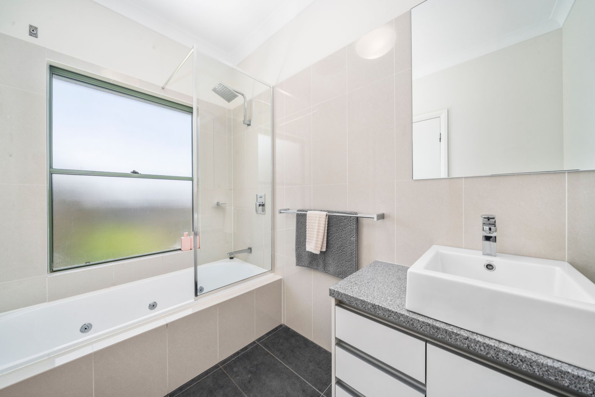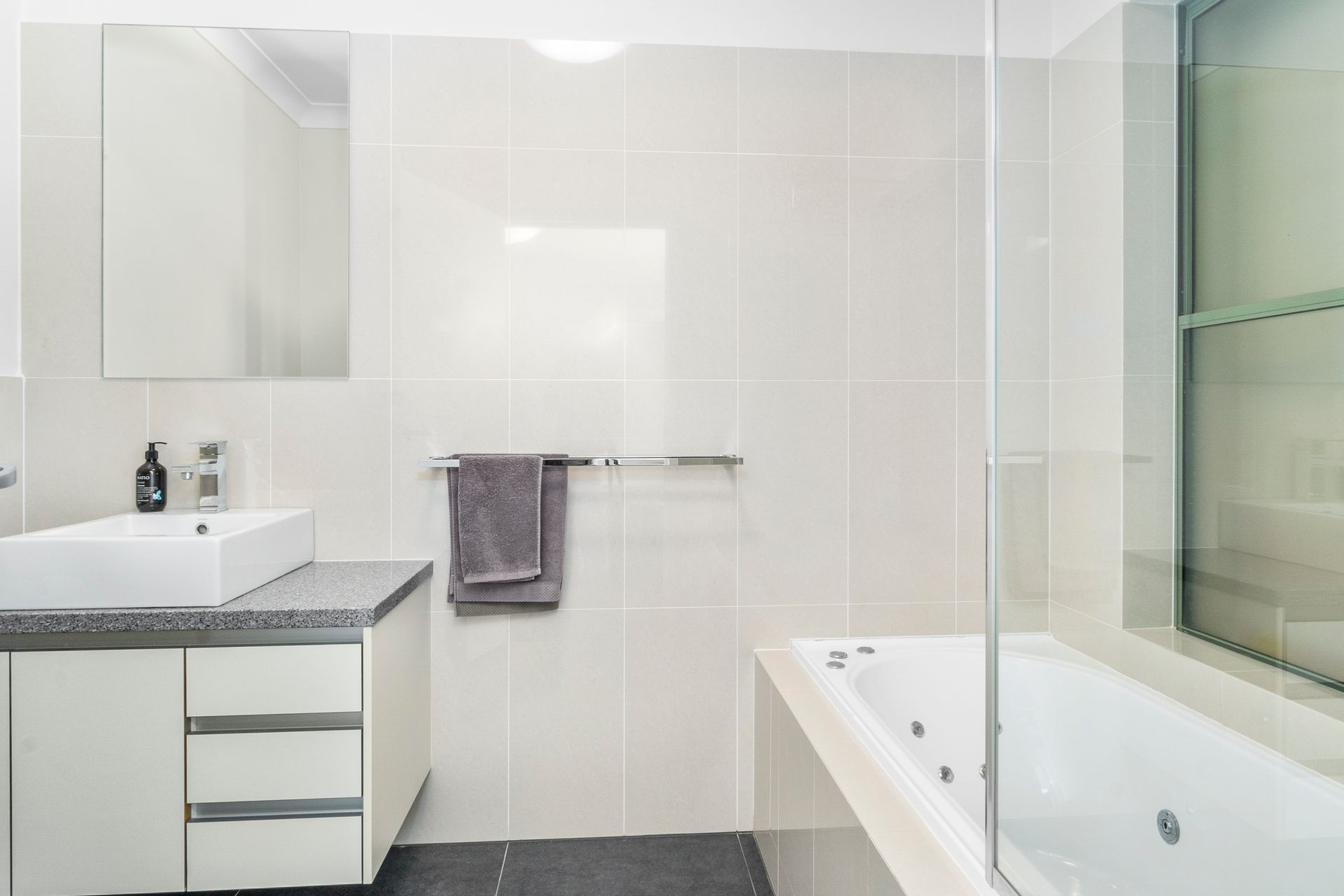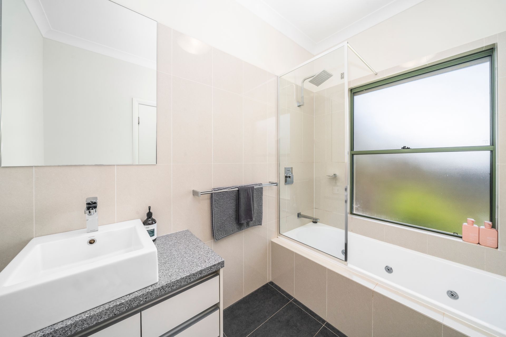 Bedroom 1: 1 x Queen + 1 x King Single, ensuite with spa bath, shower, toilet