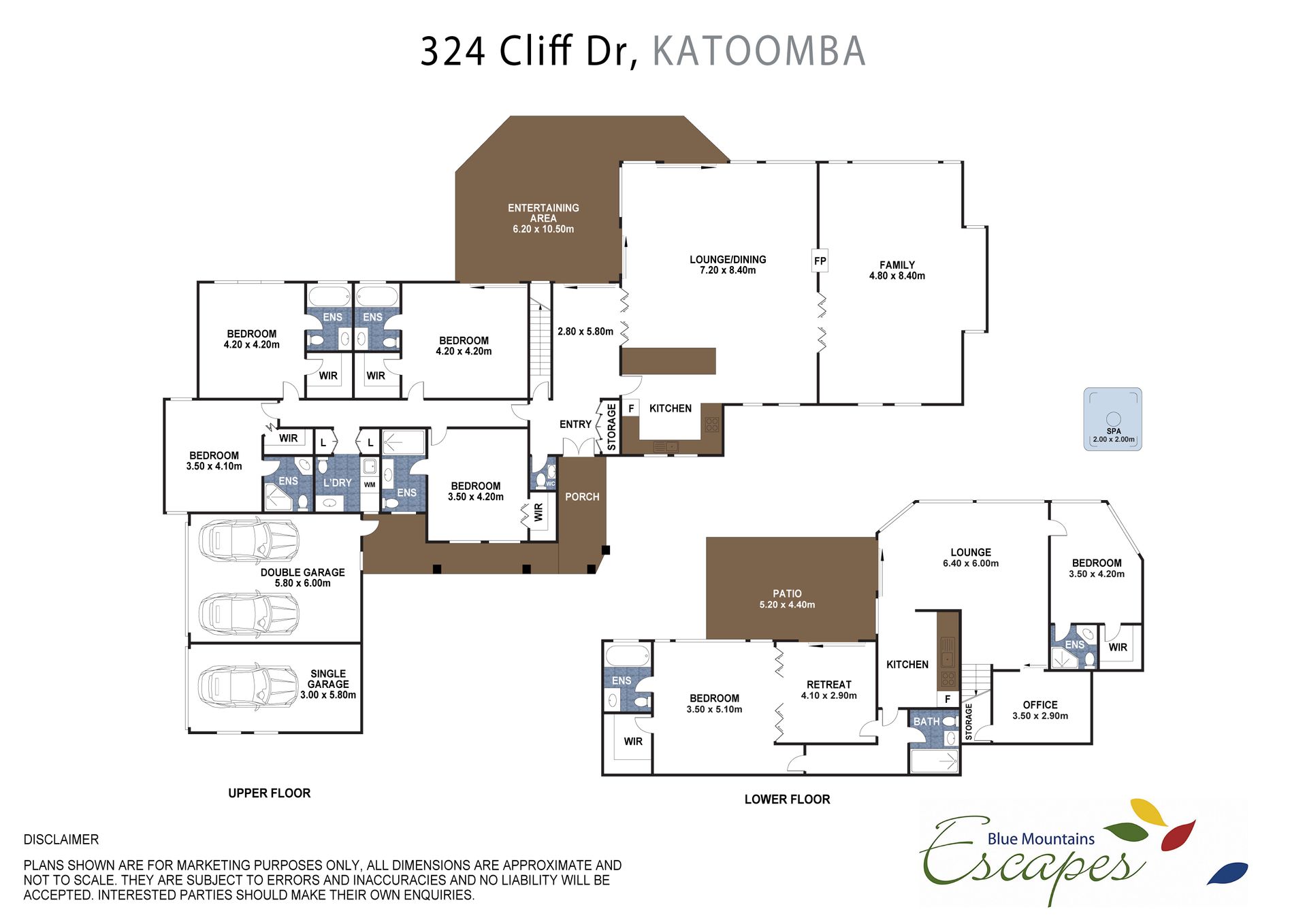 Bedroom 2: 1 x Queen, ensuite with spa bath, shower, toilet