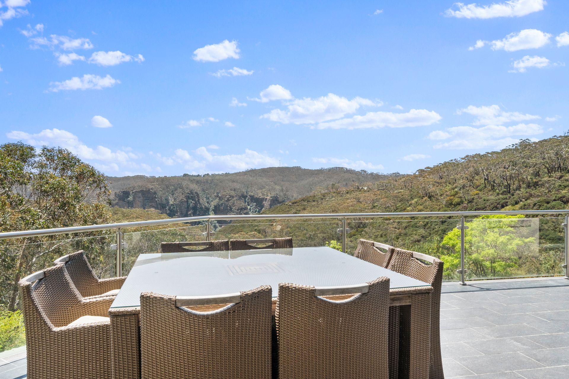 Cliffnest is a spectacular six-bedroom, seven-bathroom retreat perched on one of Katoomba’s premier streets, offering 180-degree escarpment views in a serene bushland setting. Perfect for families or groups, this pet-friendly home comfortably sleeps 10–14 guests and provides a luxurious base for exploring the Blue Mountains, with Katoomba Mall, Scenic World, and the Three Sisters Lookout just minutes away.