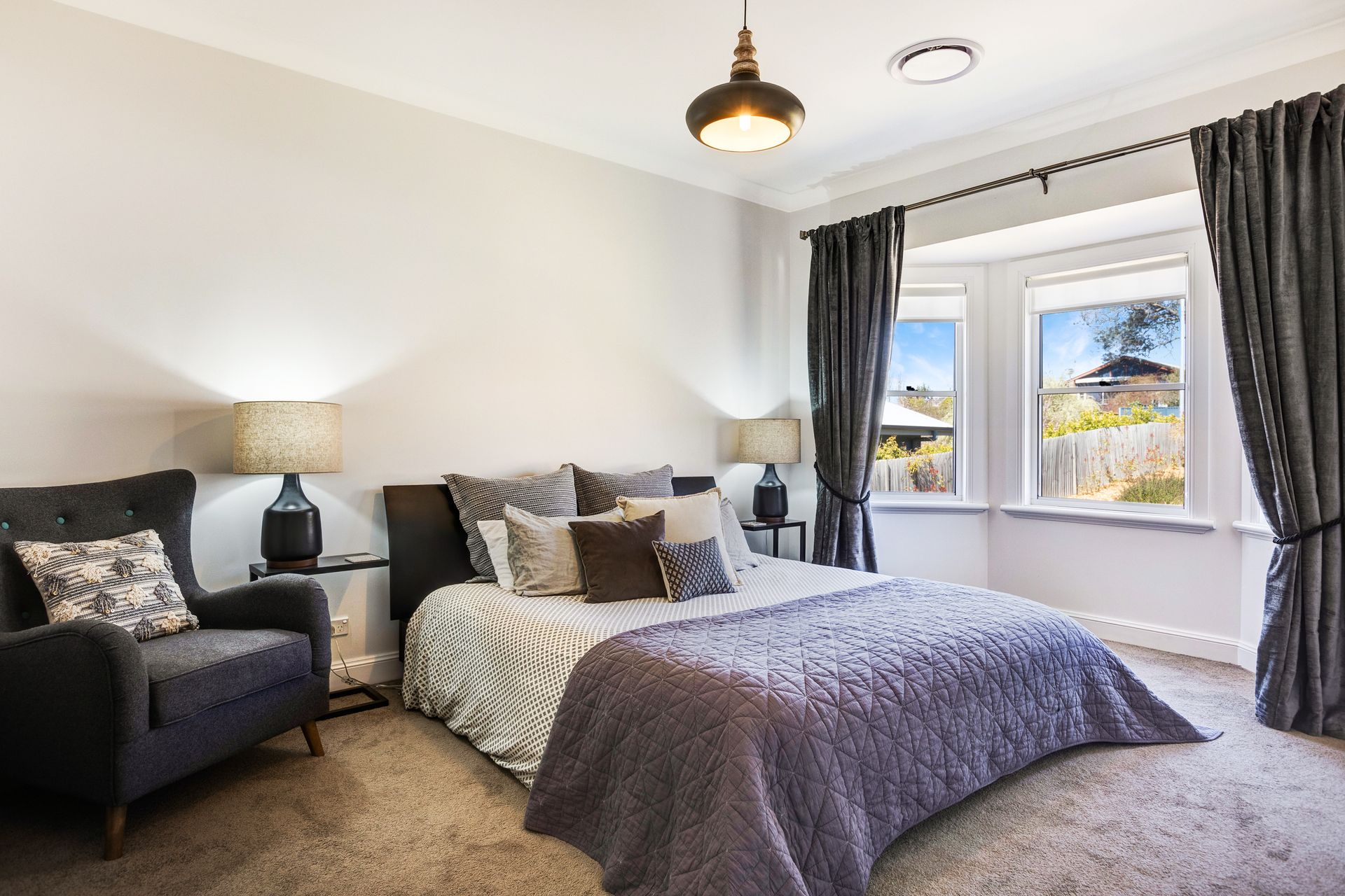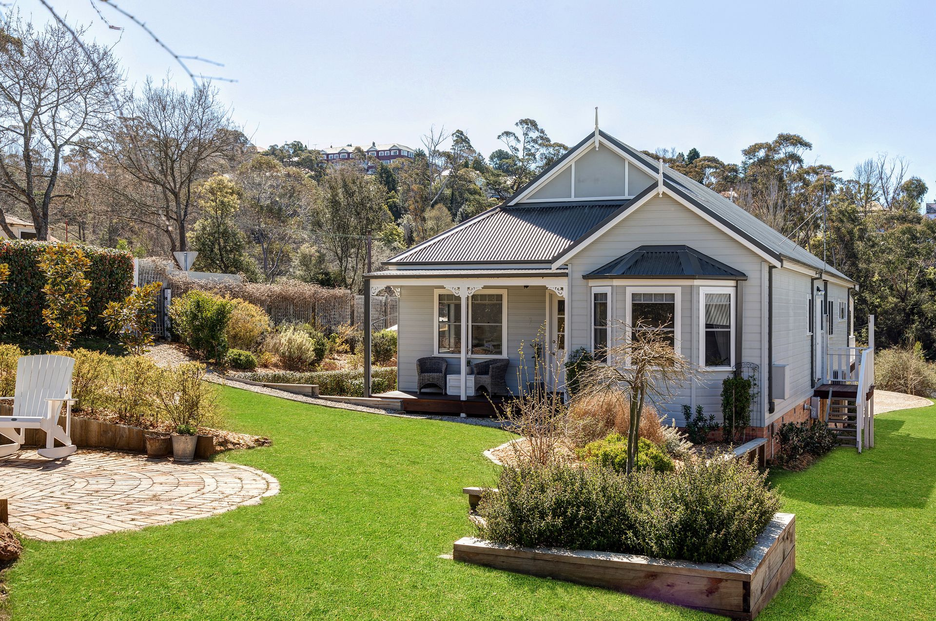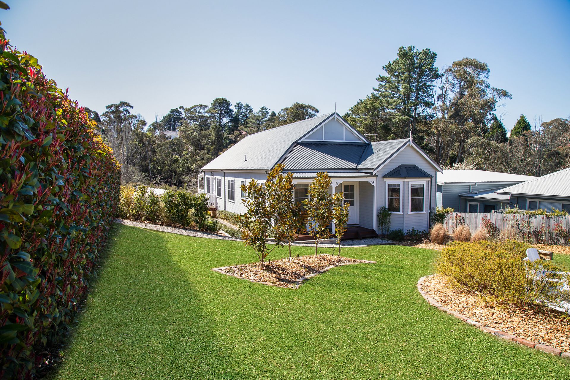 Enjoy a luxurious stay at Cumberland House, a beautifully furnished three-bedroom, two-bathroom home located just 2 minutes from Katoomba town centre. Set on a large landscaped garden, this spacious retreat comfortably accommodates up to 8 guests. The home is flooded with natural light and features central heating and reverse cycle air conditioning to keep you comfortable all year round. The open-plan living area includes two separate lounge spaces and a large dining table that seats 8, perfect for family meals or gatherings.