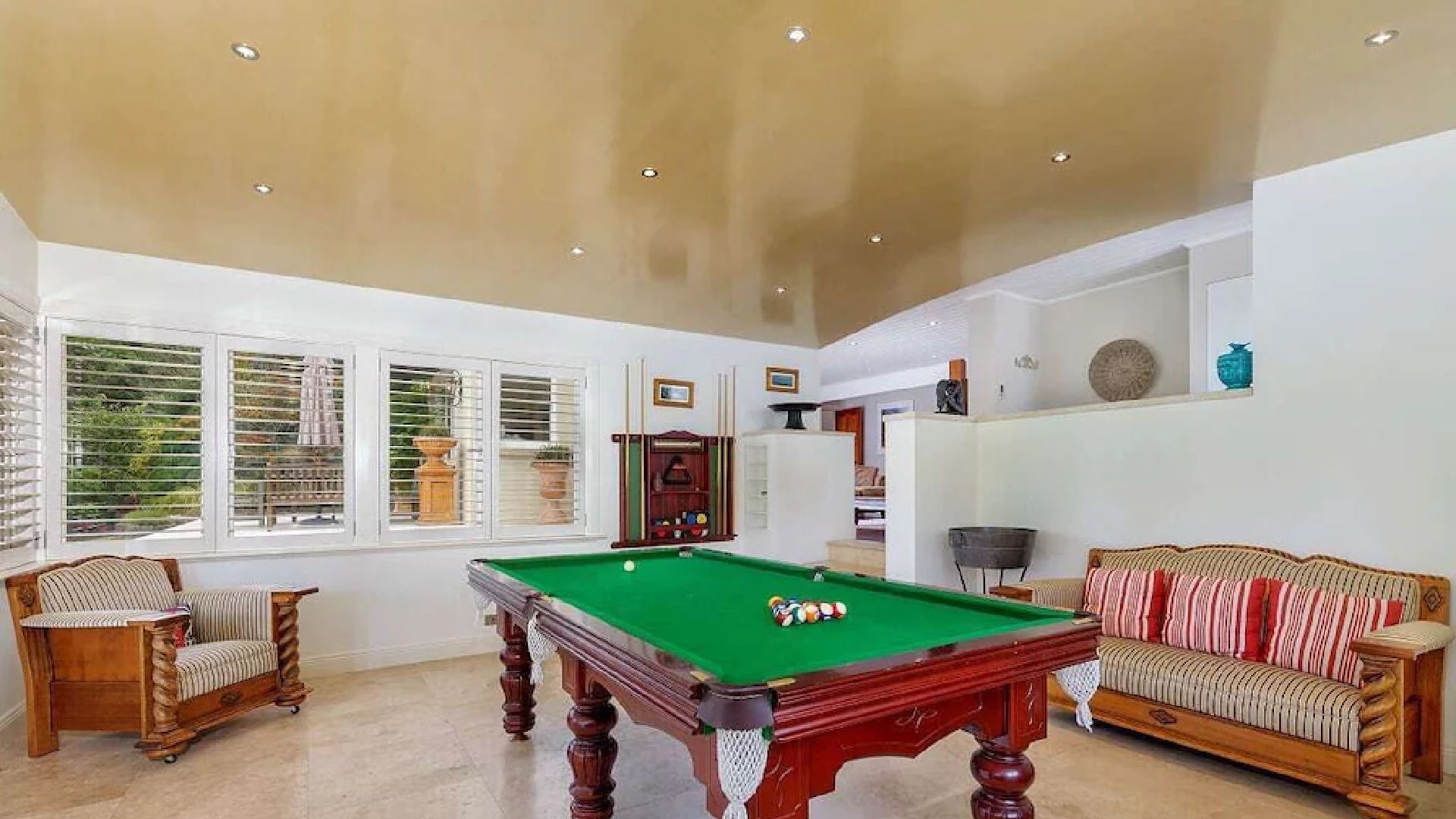 The fully equipped kitchen includes a gas cooktop and oven, dishwasher, large fridge with freezer, and Nespresso coffee machine. Share meals in the separate dining room or enjoy alfresco dining in the garden near the B B Q. The games room, complete with a pool table, a 75” TV, and a DVD library, provides endless entertainment, while a dedicated workspace and Starlink Wi-Fi (200+ Mbps) support connectivity. Curl up by the slow combustion wood fireplace on cooler evenings or relax in the outdoor spa.