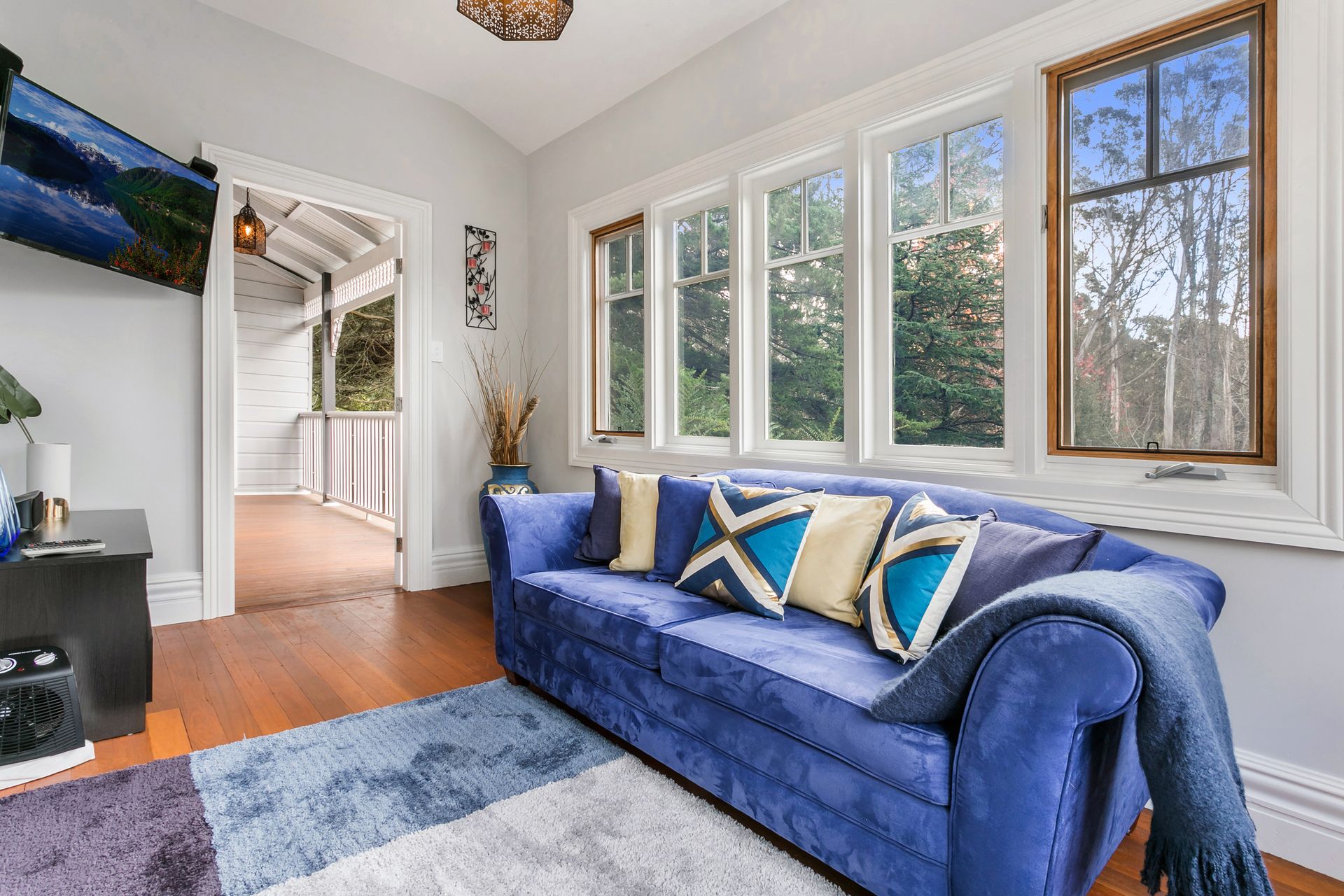 Perfectly located just 1.5 km from Leura Station, village shops, cafés, and restaurants, Hailsham provides easy access to the very best of the Blue Mountains. Inside, discover 12-foot ceilings with ornate plasterwork, elegant chandeliers, and polished Kauri pine floors. The large formal living room features a slow combustion fireplace, while the sun-drenched sitting room and country-style eat-in kitchen invite relaxation and connection.