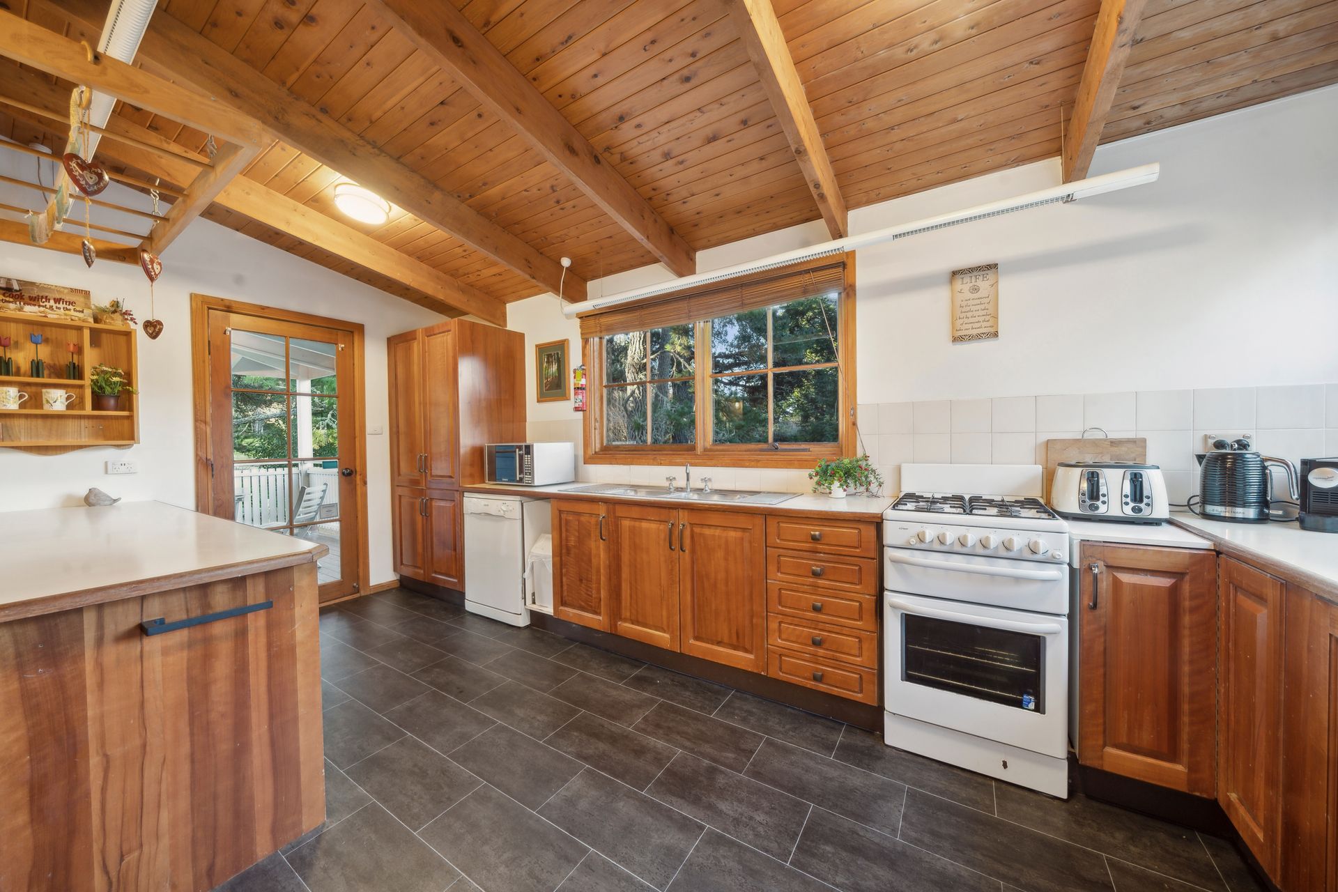 Inside, the open-plan kitchen, dining, and lounge areas create a warm and inviting space. Enjoy the ambience of the slow combustion fireplace, relax on the lounge suite, or unwind with a movie on the 47" LCD TV. The modern kitchen is fully equipped with an electric oven, gas cooktop, dishwasher, and all essentials for a comfortable stay.