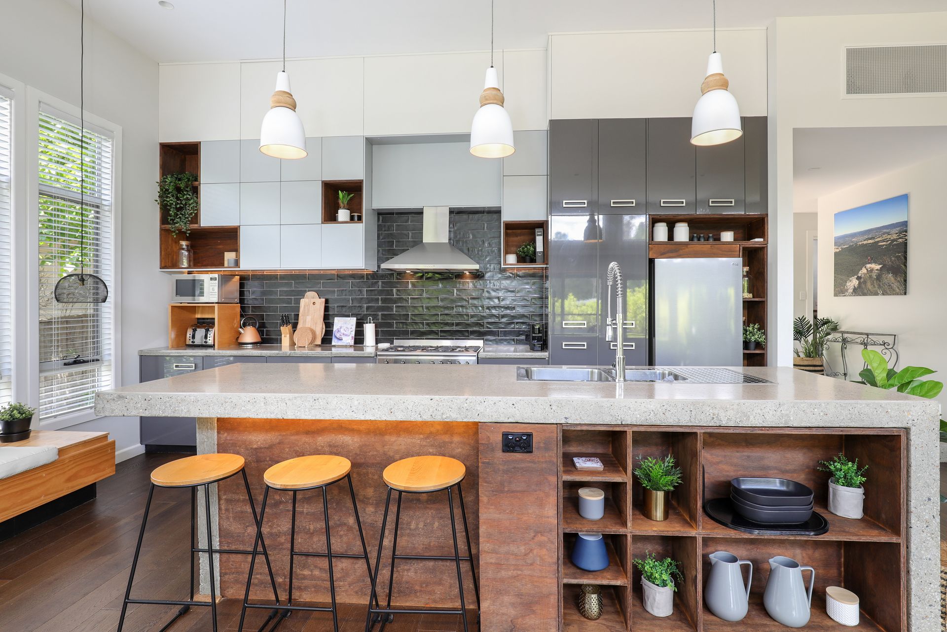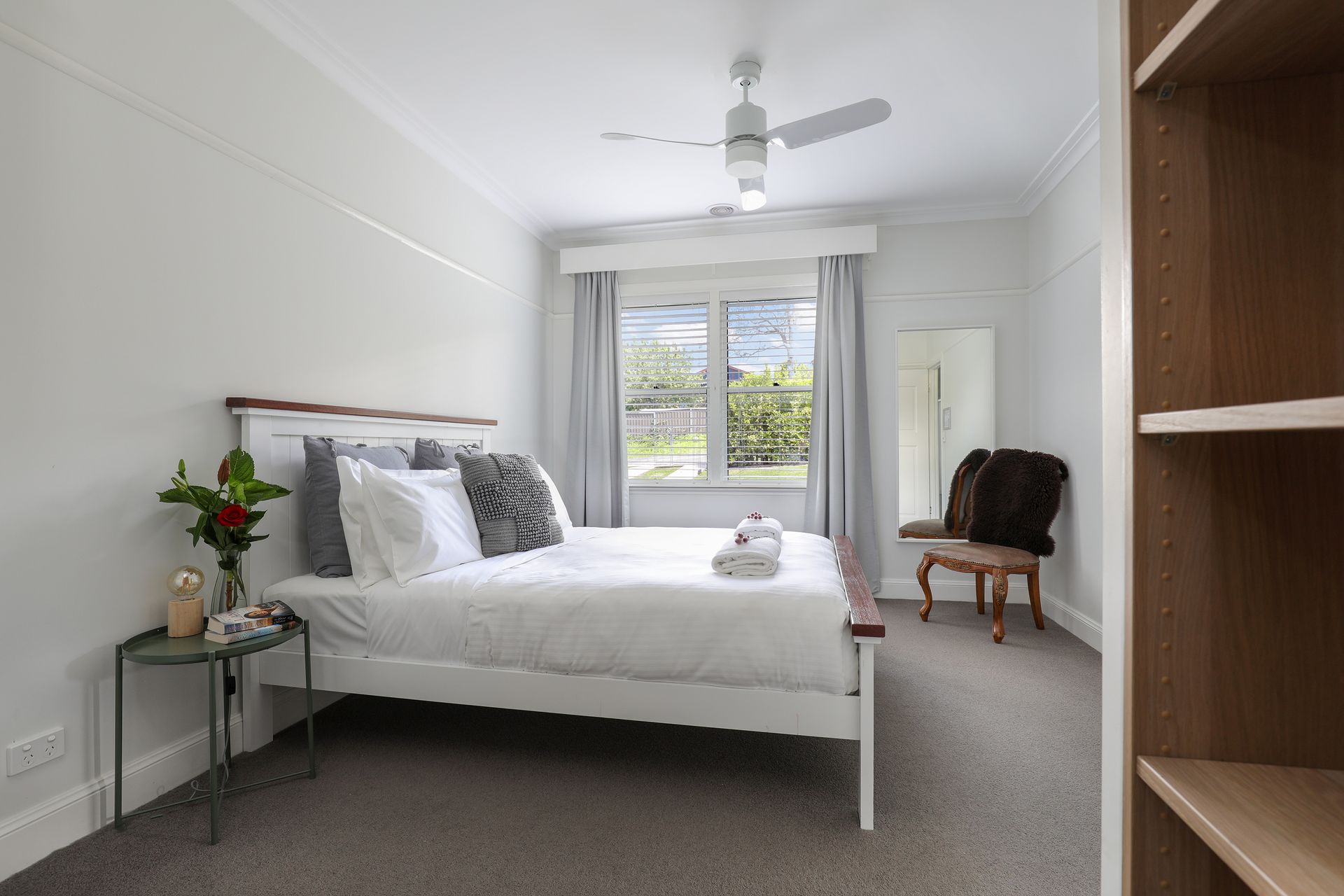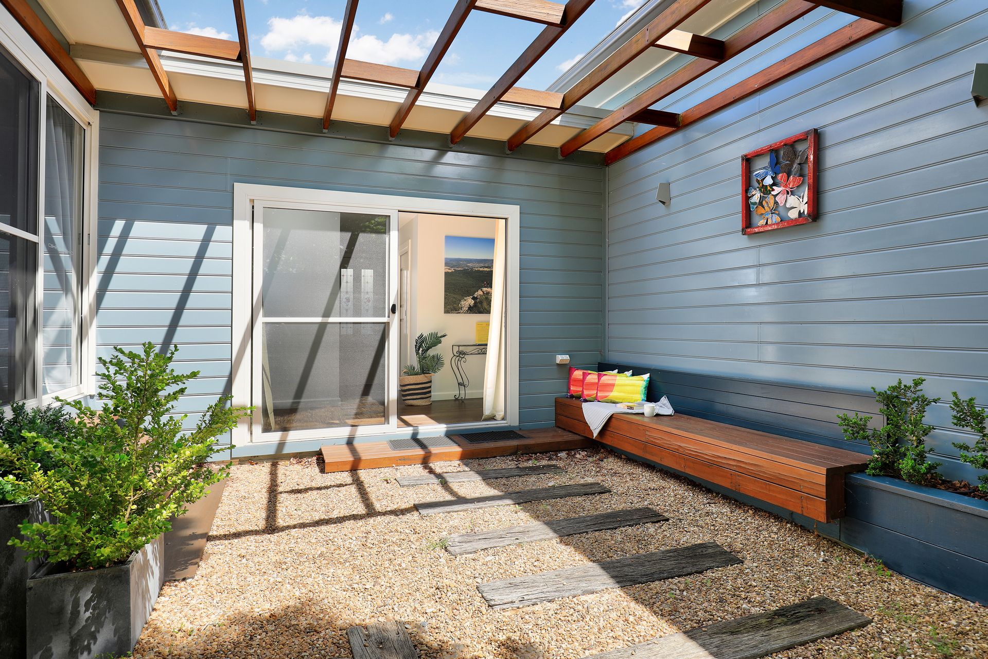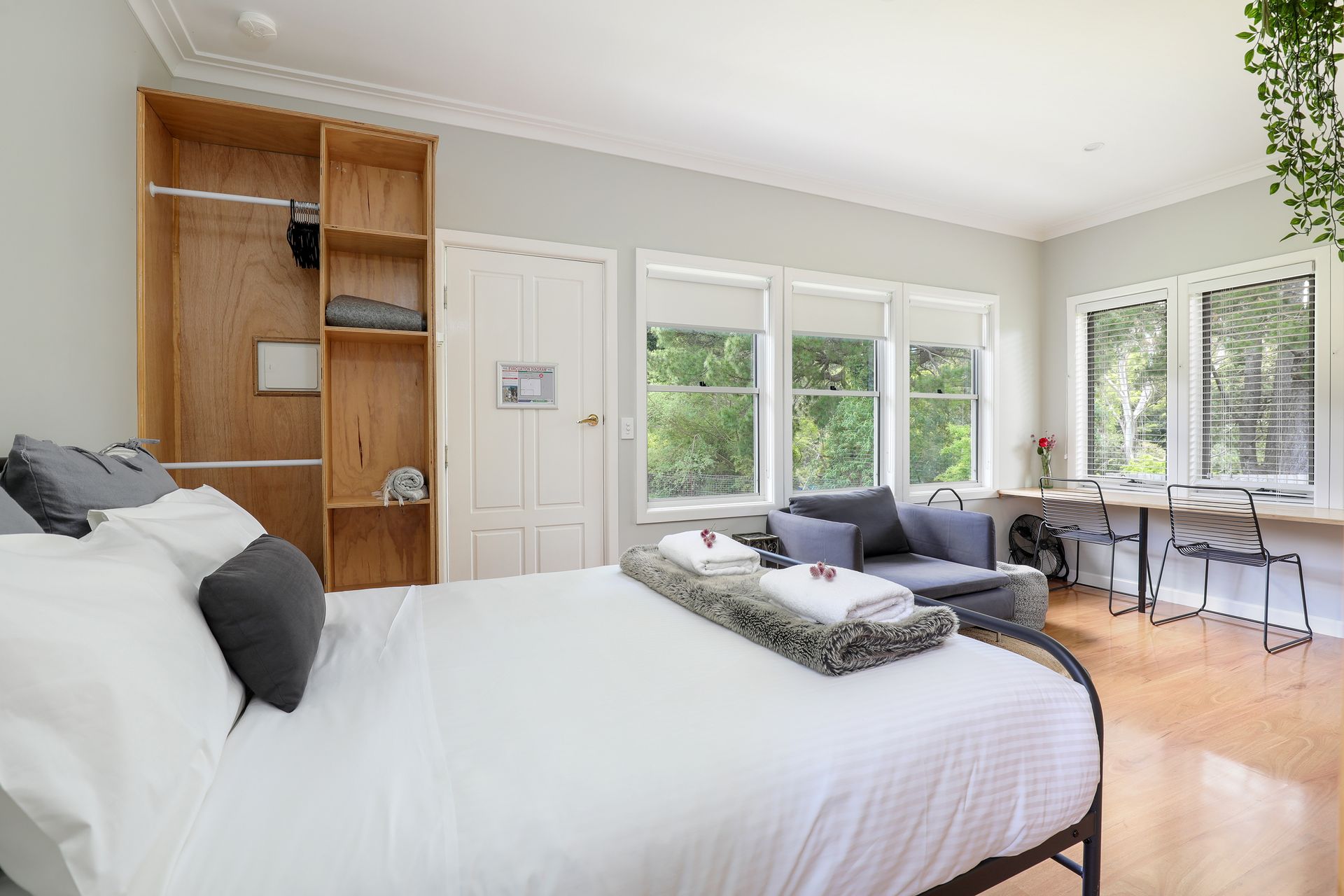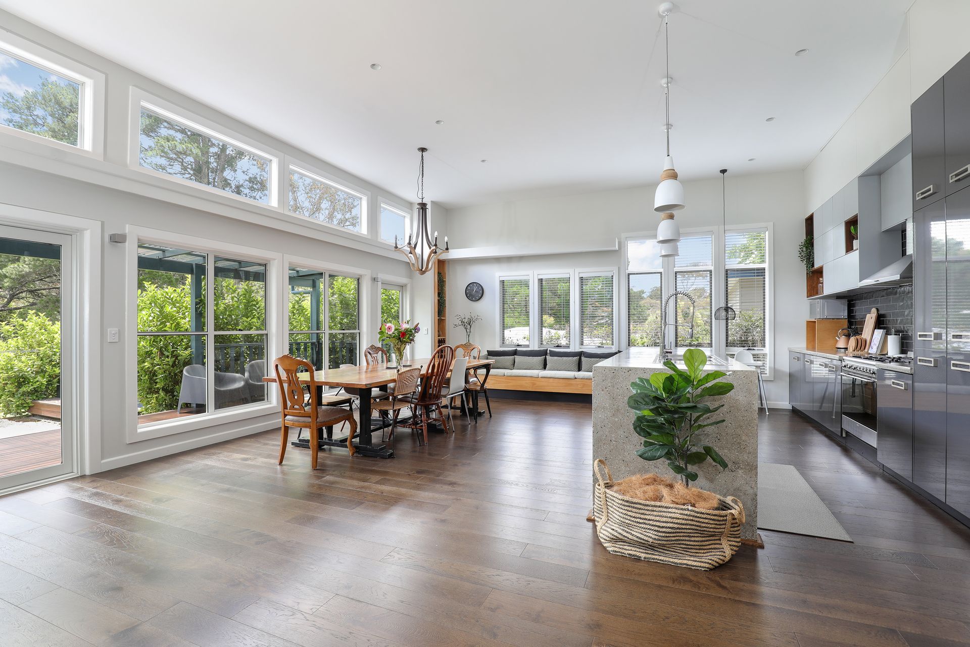 This brand-new 5-bedroom, 3.5-bathroom mountain home offers a stylish and spacious retreat just a short walk from the main street of Katoomba. Beautifully decorated with modern features, the main house boasts generous open-plan living, a fully equipped kitchen, and four comfortable bedrooms. Large windows allow natural light to pour into the living area, which opens onto a covered rear deck with a Weber Q — perfect for relaxed outdoor dining.