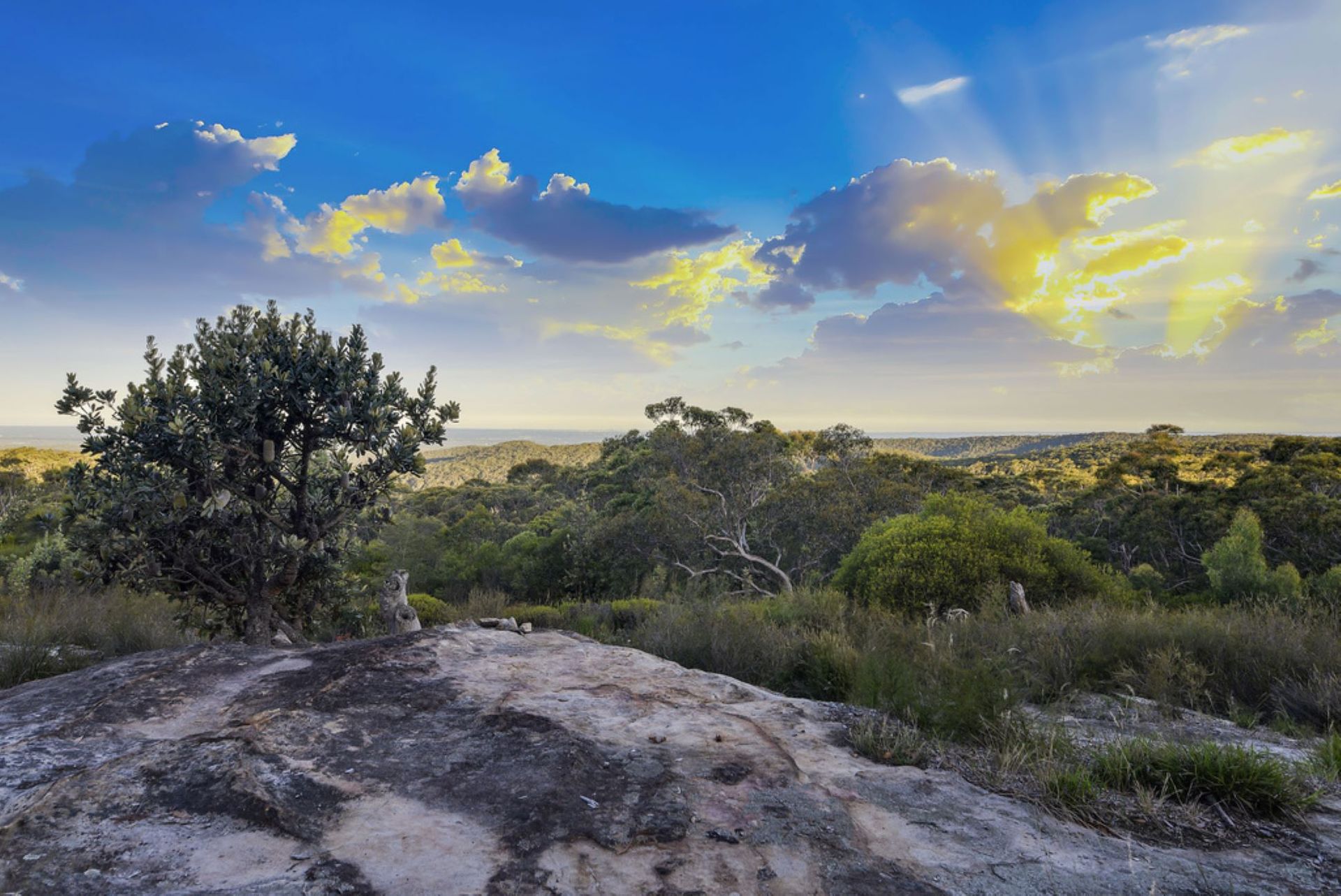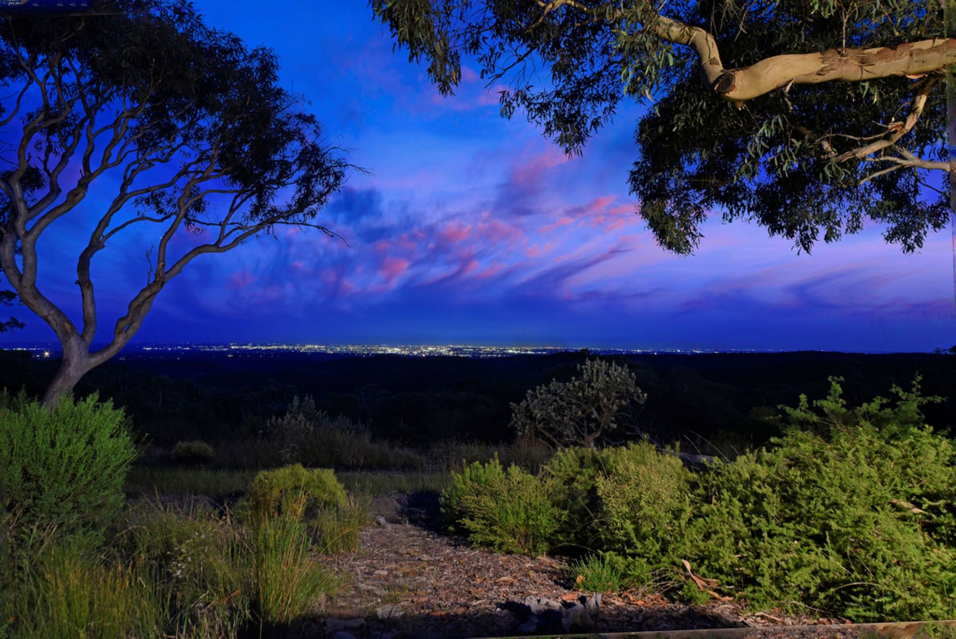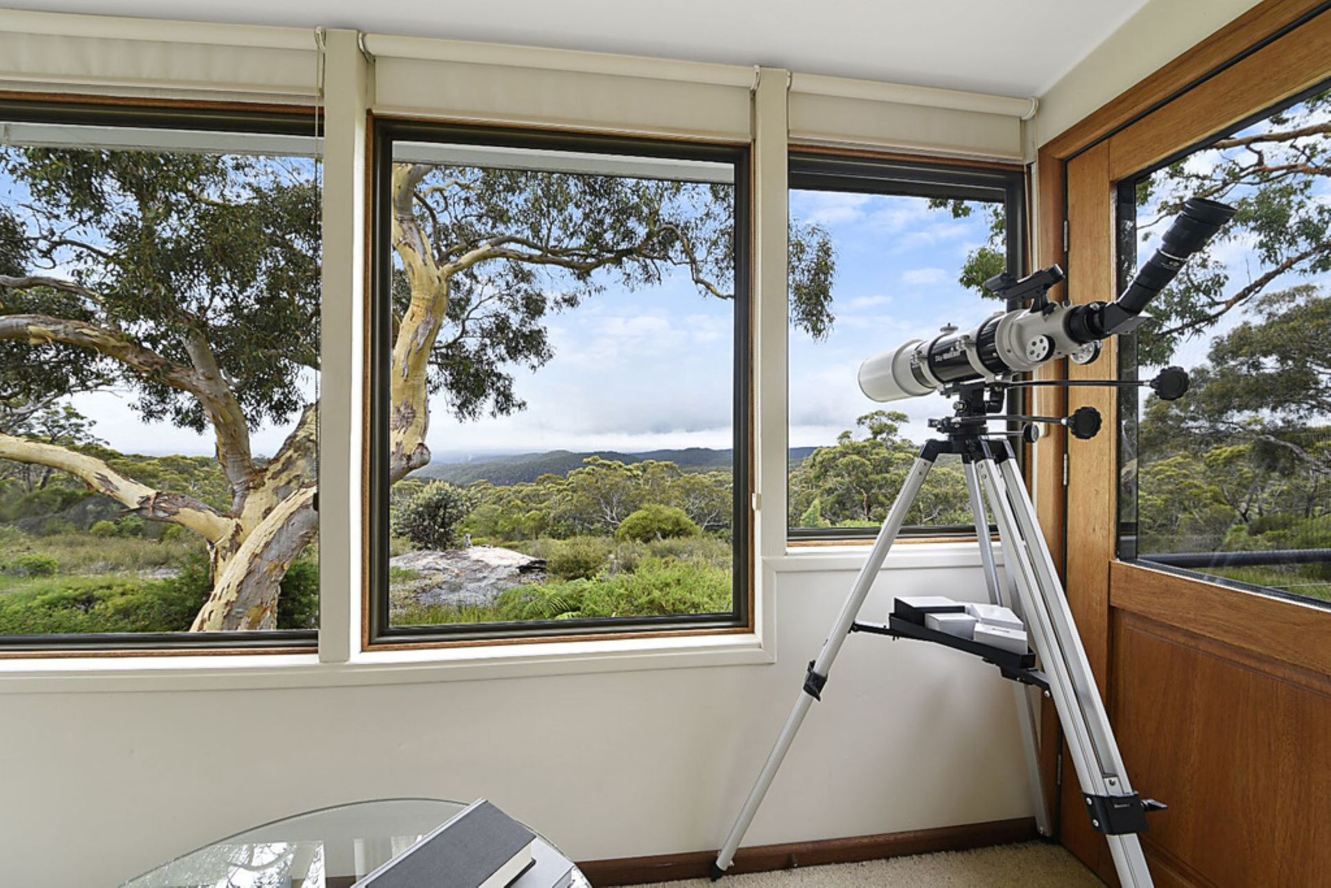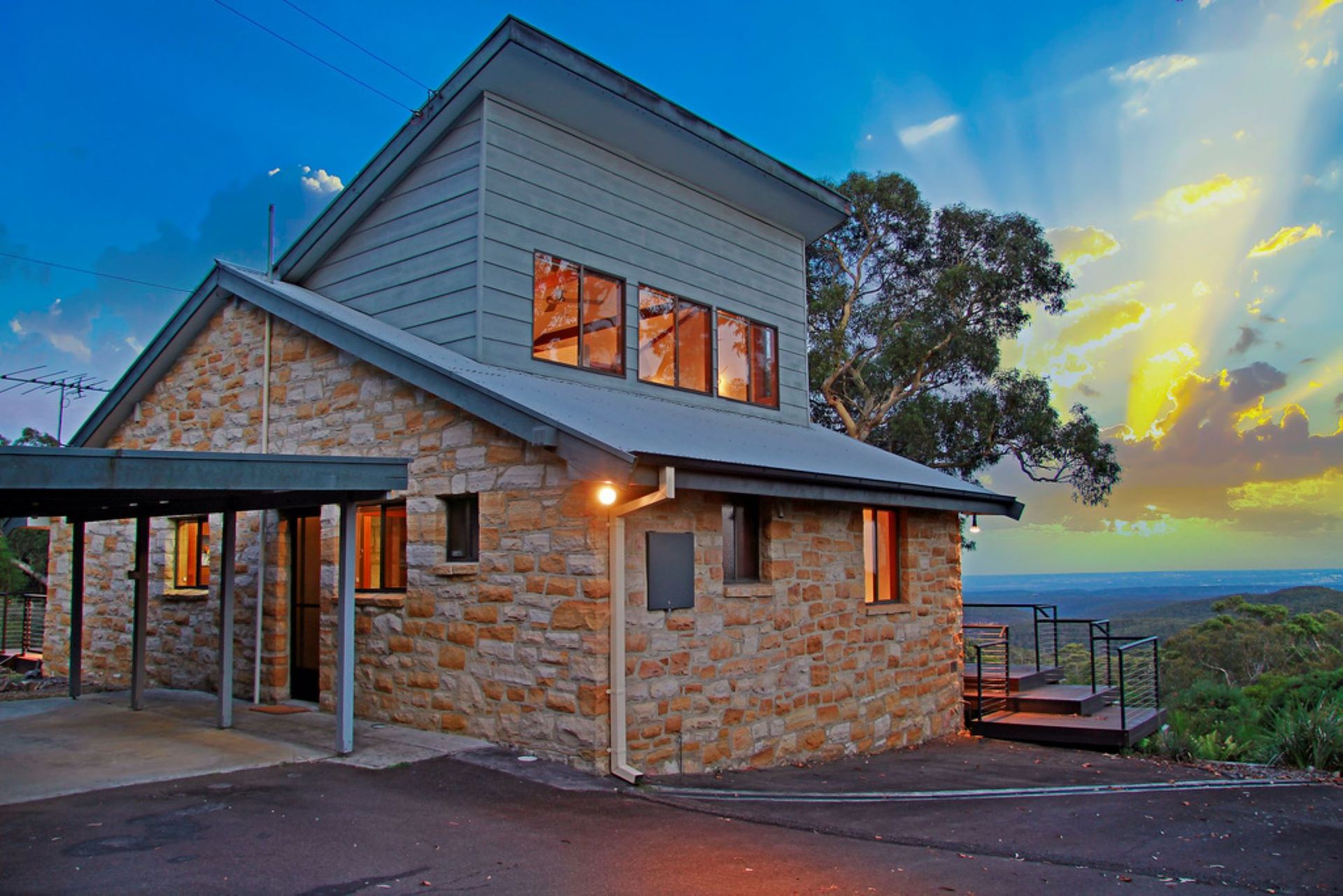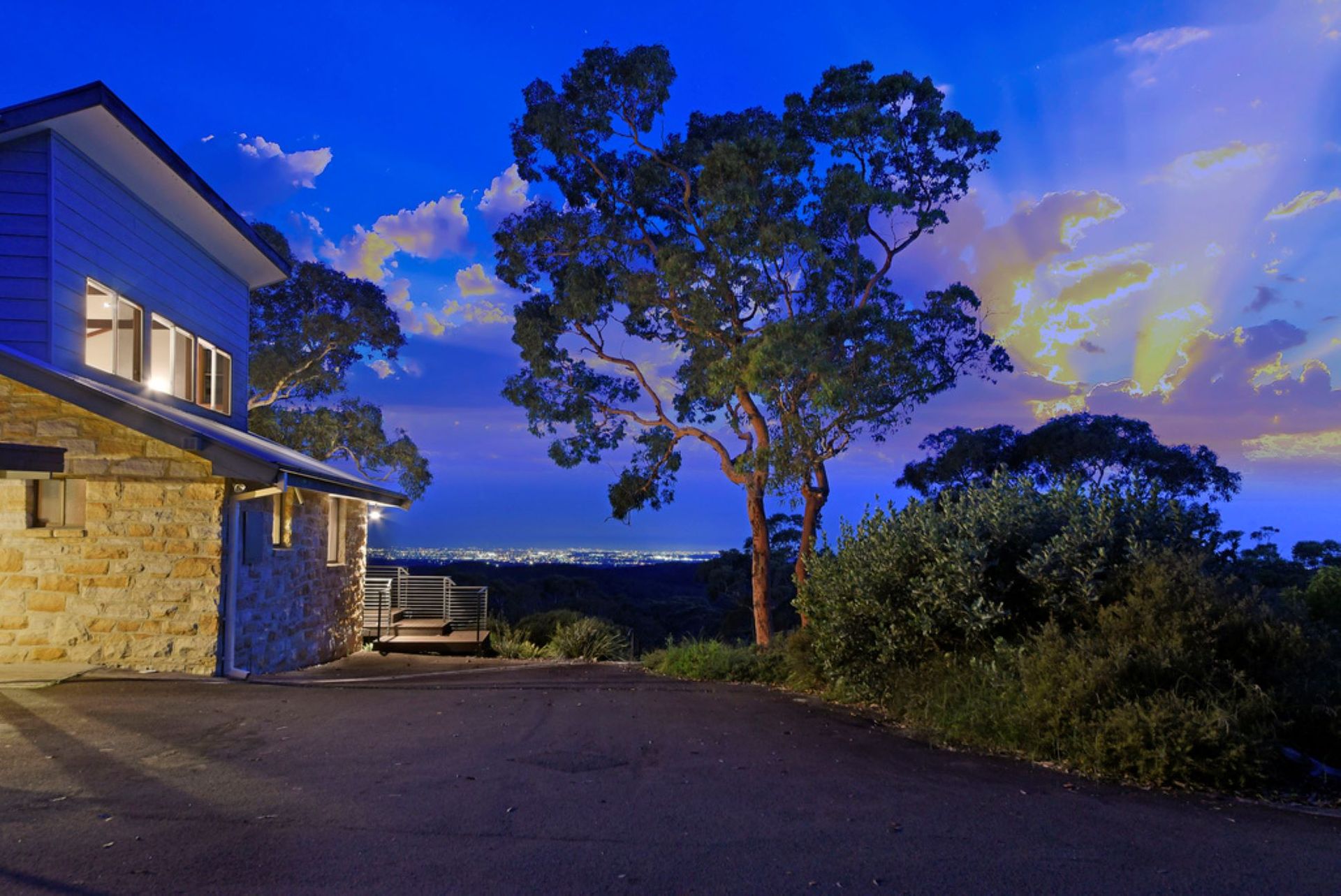 Sydney View offers rustic yet elegant short-stay accommodation nestled at the base of the Blue Mountains in Woodford, just west of Sydney. Set across 16 acres of private native bushland bordering the World Heritage-listed Blue Mountains National Park, the property commands sweeping views across Parramatta, Chatswood, and Sydney. As night falls, guests can enjoy the magical twinkle of city lights from the comfort of this peaceful retreat.