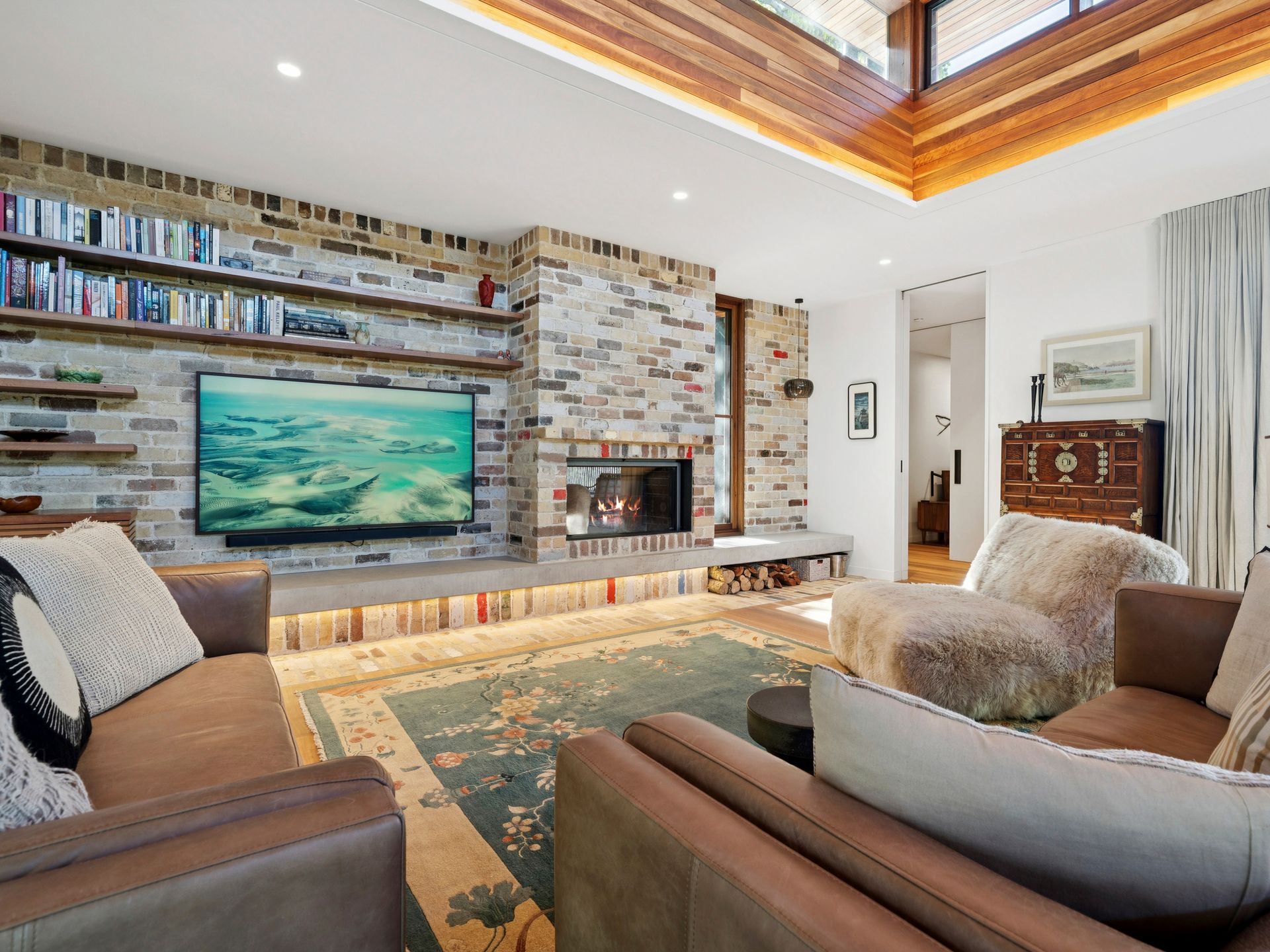 Step into the combined kitchen, dining, and lounge area — the heart of the home — featuring a fully equipped modern kitchen with cooktop, oven, and dishwasher. Relax by the gas fireplace or enjoy your favourite shows on the smart TV. Each bedroom has been designed with comfort in mind, offering high-quality linens and thoughtful furnishings to ensure a peaceful stay.