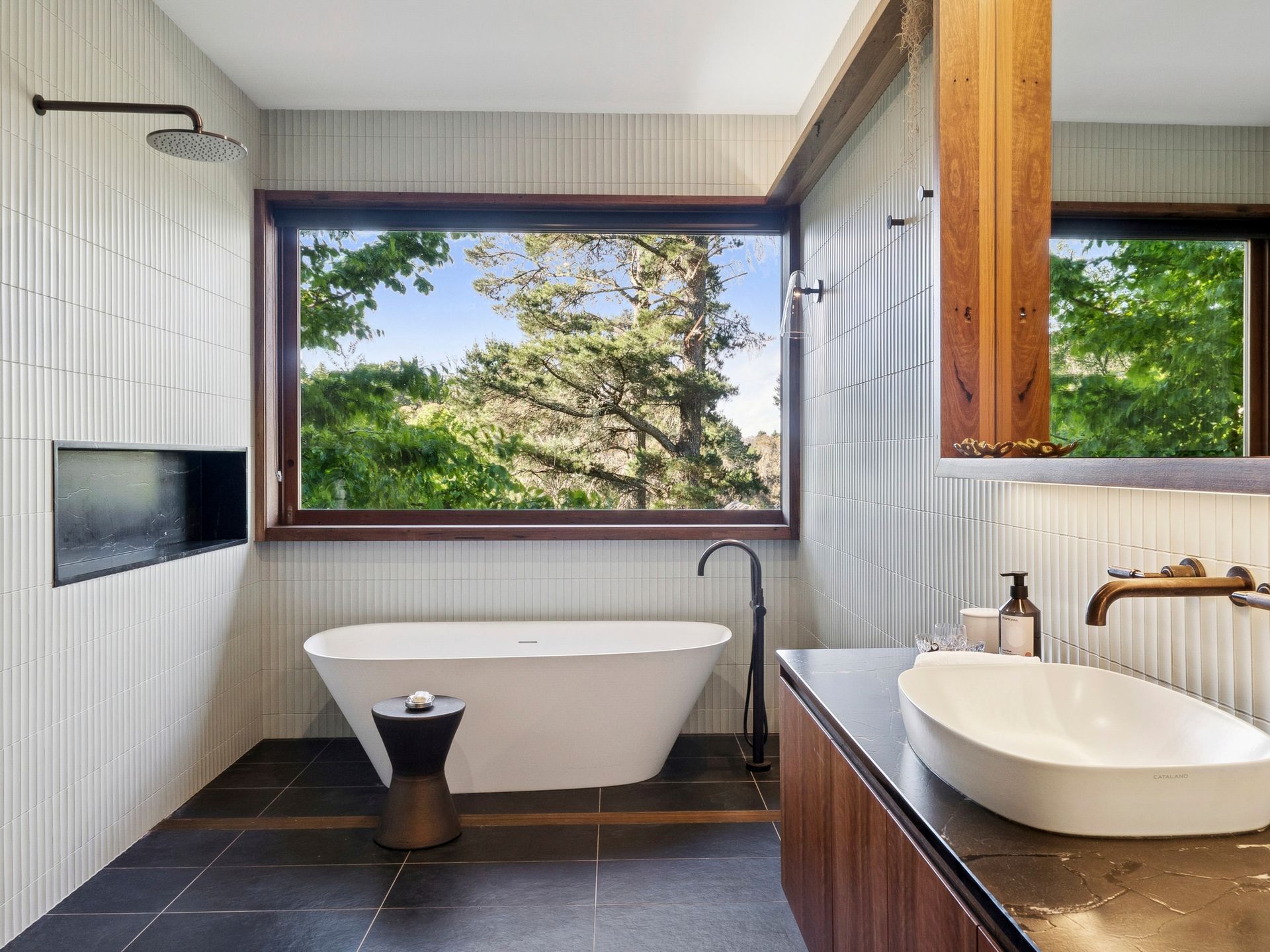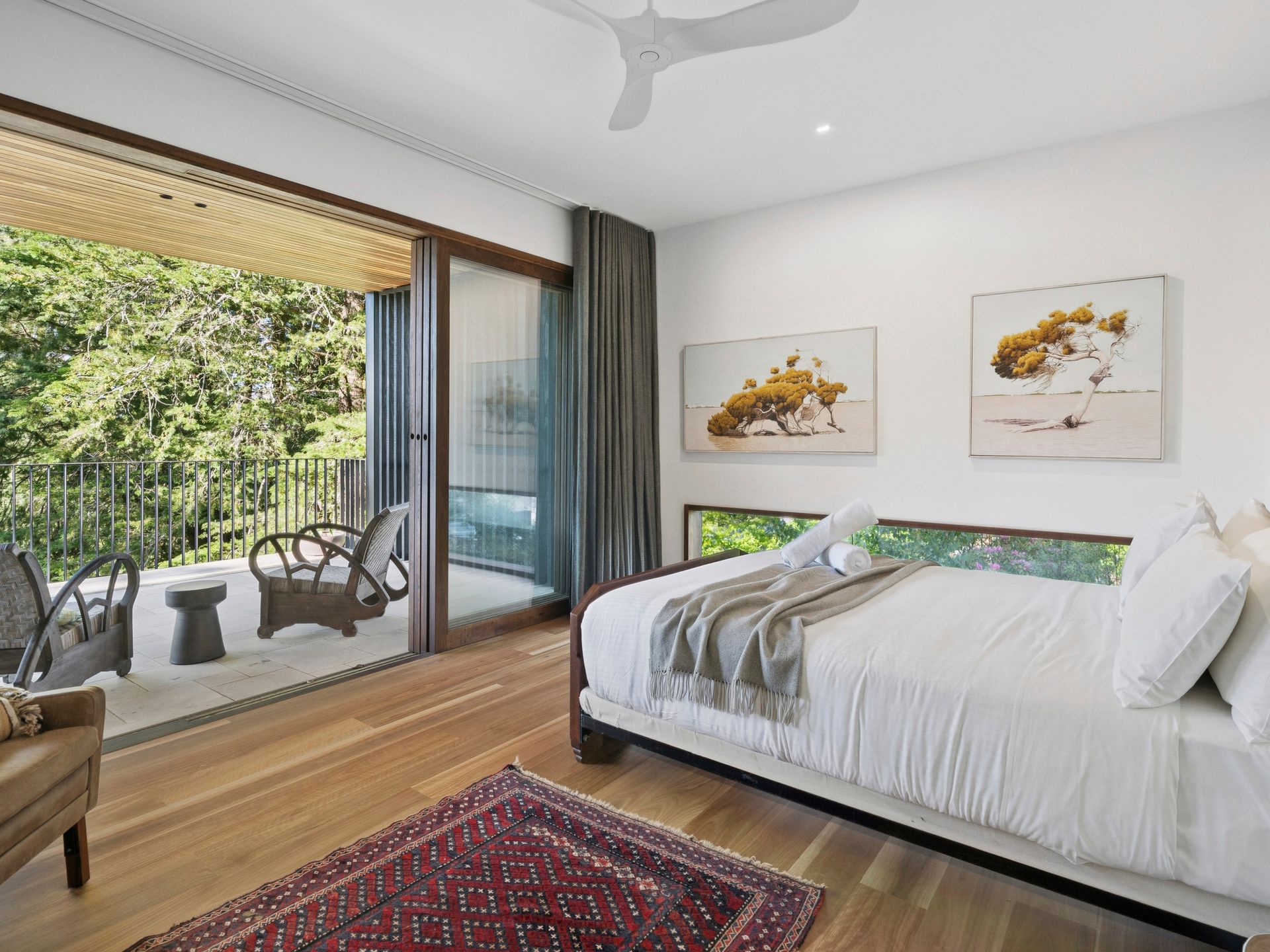 Outside, unwind in the private garden with outdoor seating — the perfect spot for your morning coffee or a glass of wine in the evening. The alfresco deck with BBQ offers the ideal setting for entertaining while admiring the tranquil surroundings.