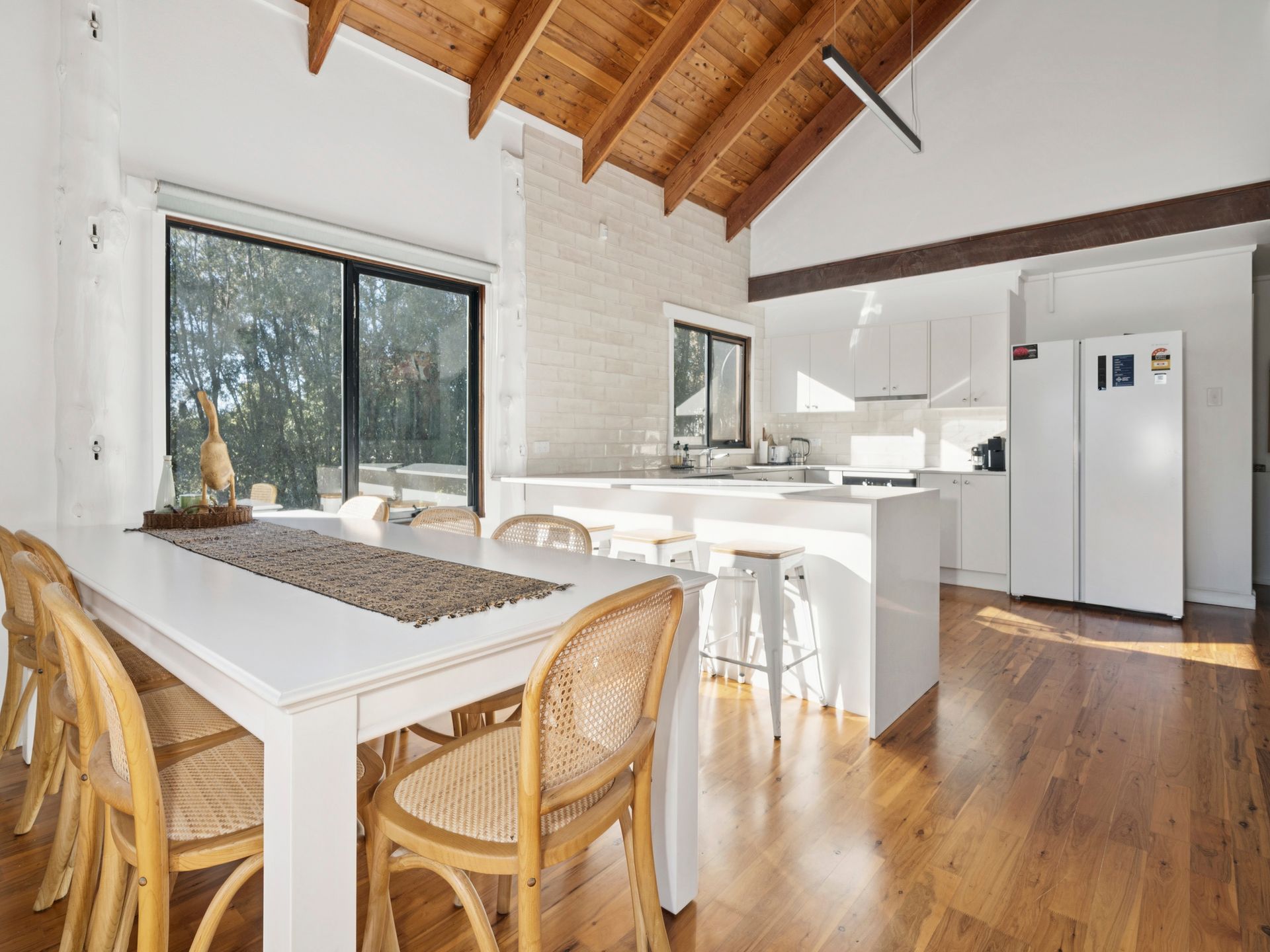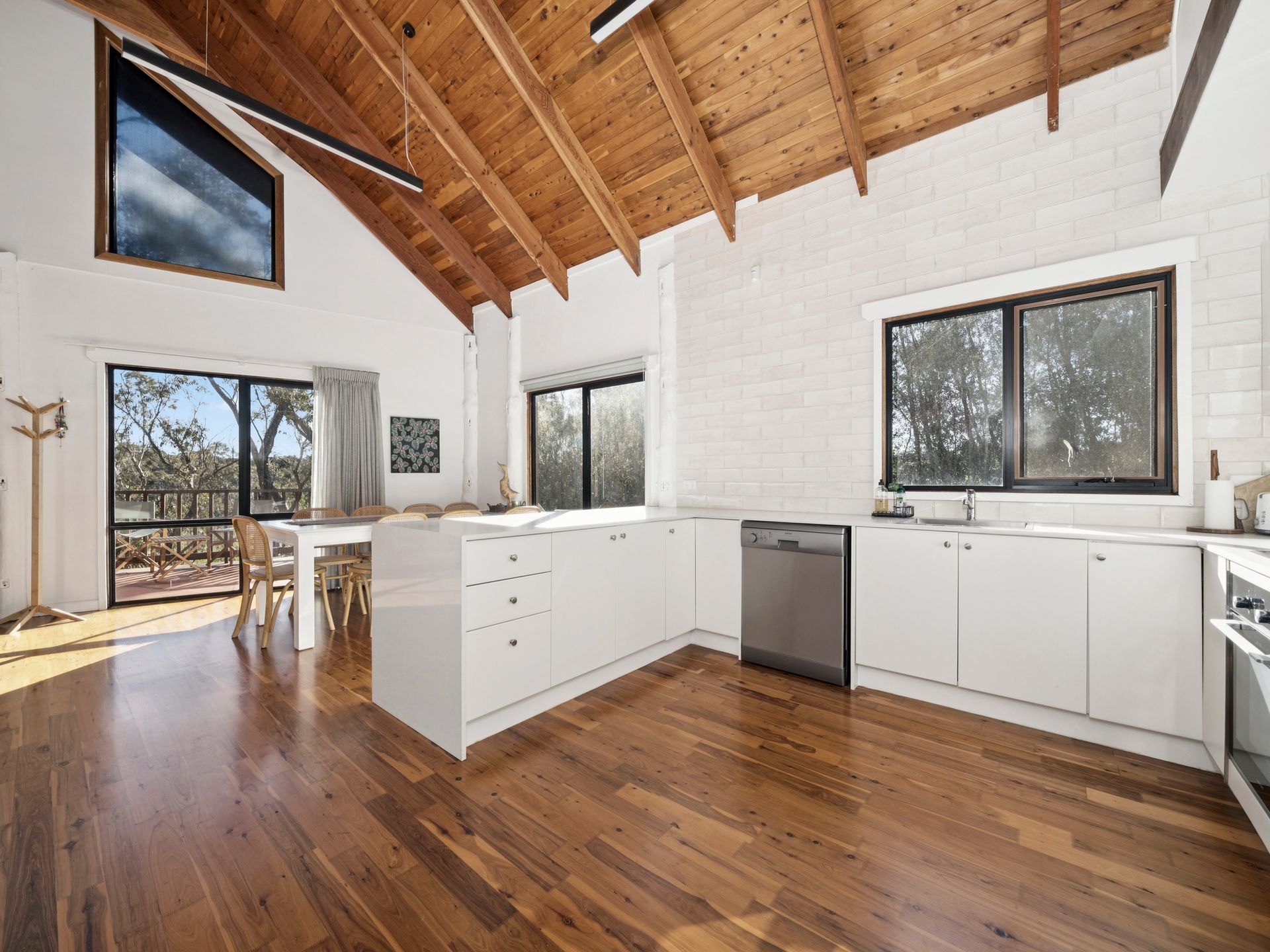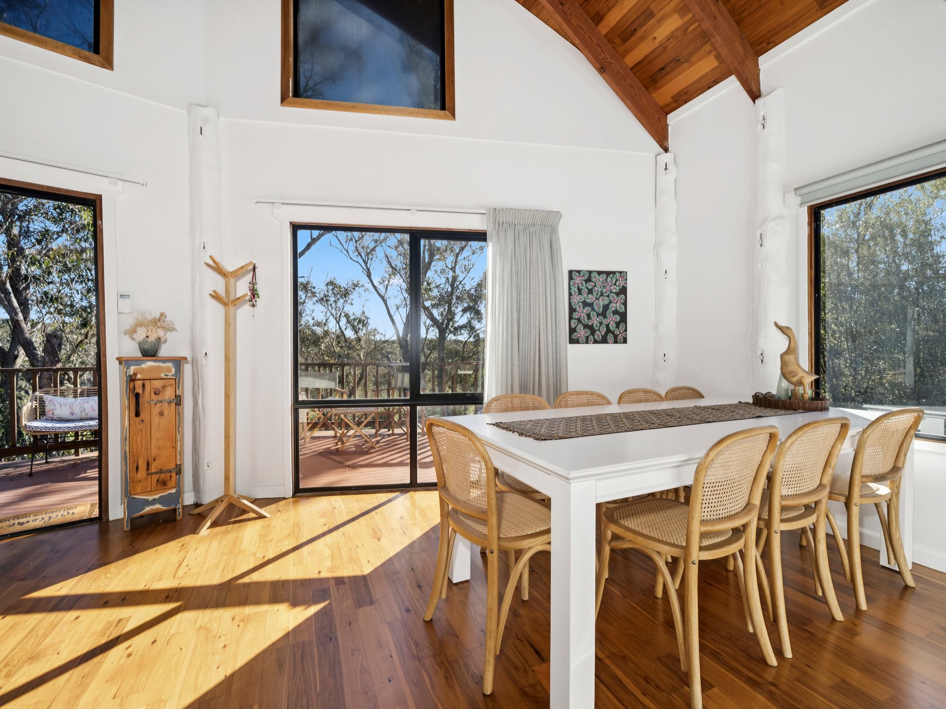 Treetop Escape is a picturesque sanctuary offering the perfect balance of tranquillity and convenience. Nestled amid lush bushland, this inviting four-bedroom retreat comfortably accommodates up to eight guests, blending rustic charm with modern comfort.