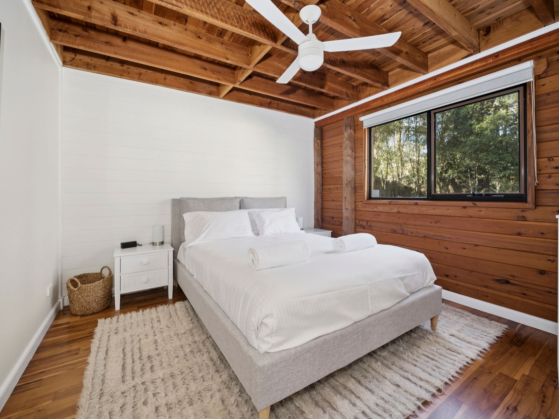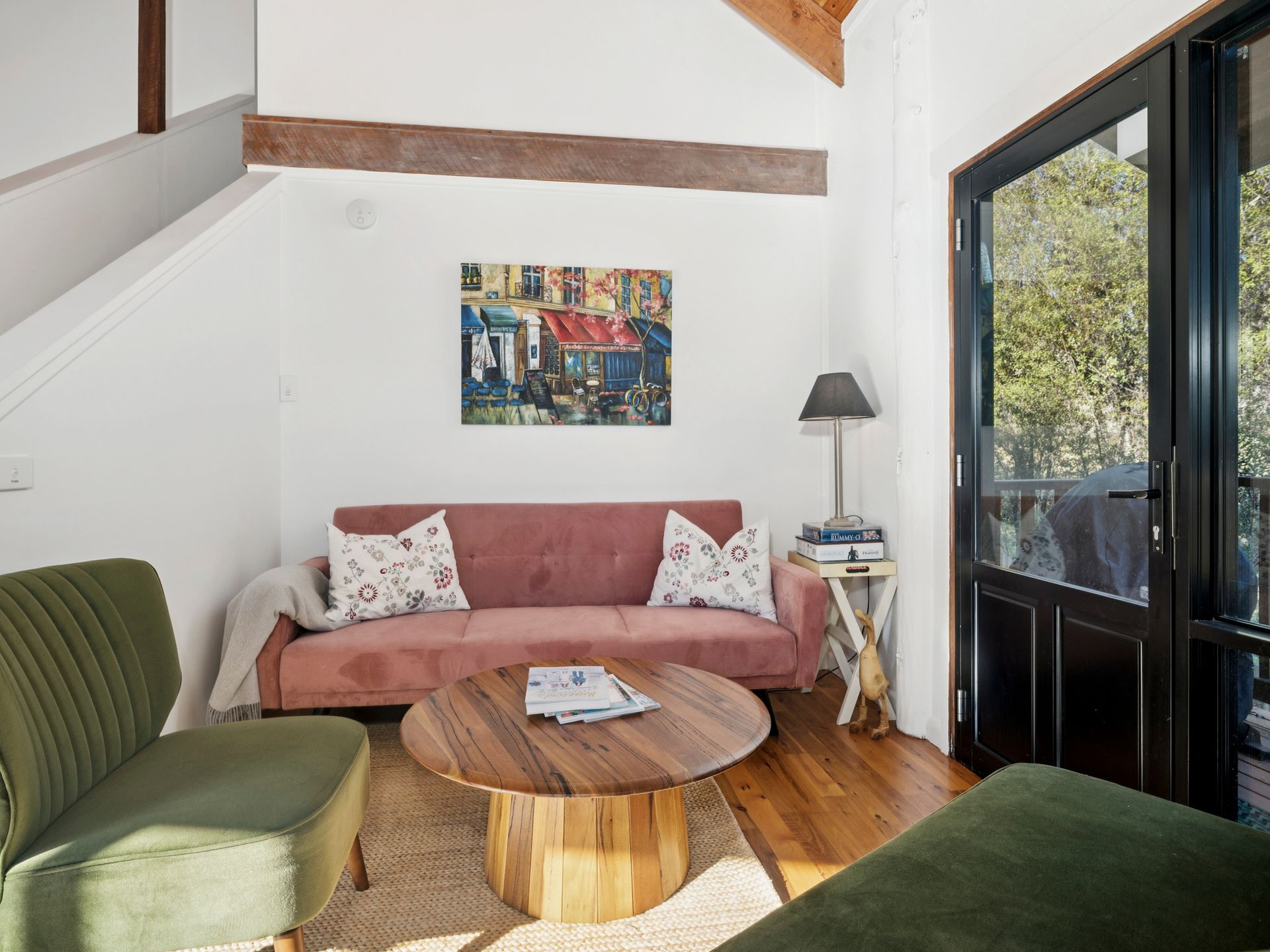 Enjoy peaceful mornings on the expansive deck with breathtaking bushland views — the ideal spot for a relaxed breakfast or evening drink. Inside, unwind in the cosy living space with free Wi-Fi and gas heating, or retreat to the attic bedroom with reverse cycle air conditioning for year-round comfort.