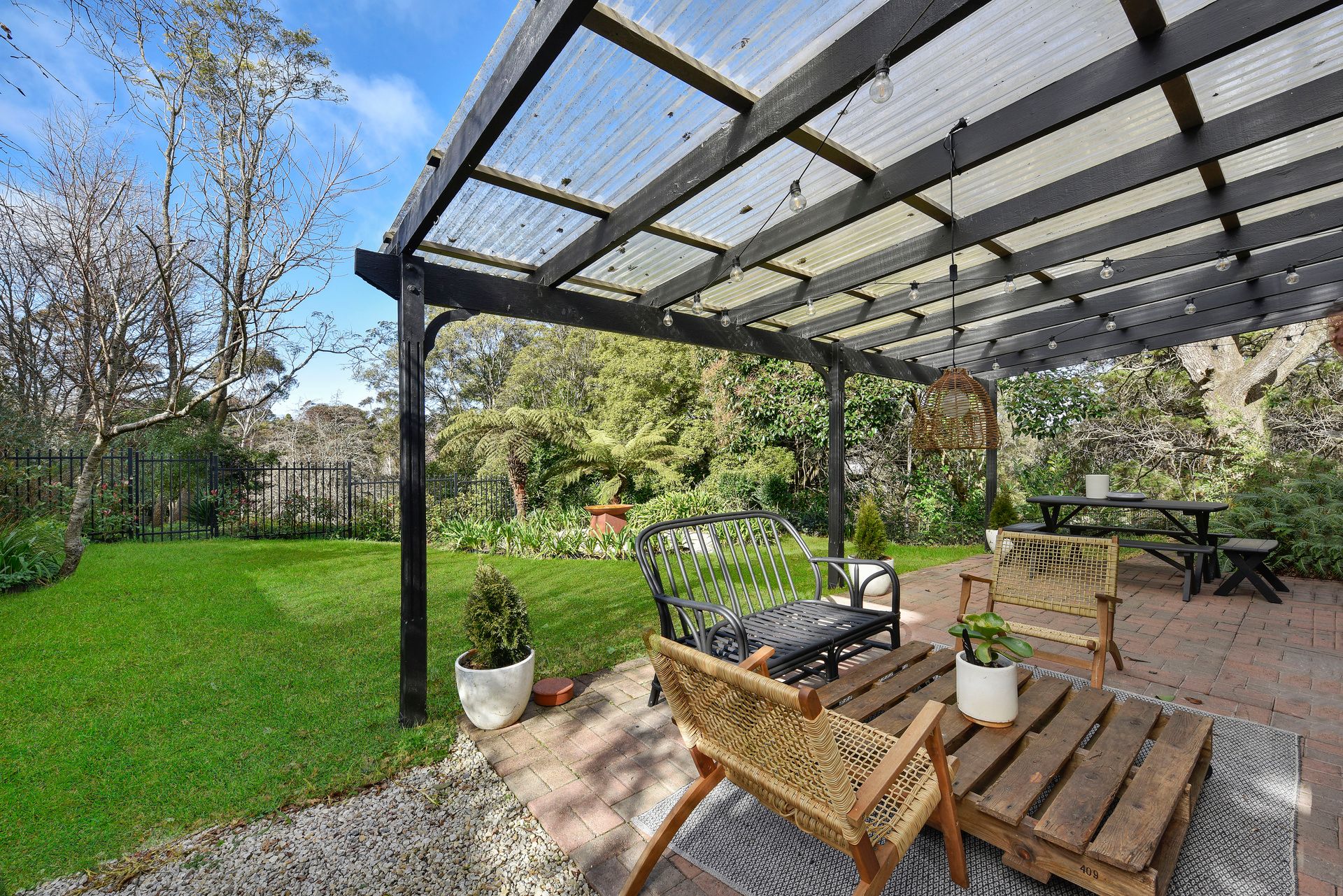 Step outside to the north-facing deck with outdoor furniture, perfect for enjoying your morning coffee while taking in the serene bushland views. The property also provides a washing machine, dryer, laundry tub, and ironing facilities for your convenience. Free Wi-Fi keeps you connected, and parking is available off-street for one car, with ample on-street options. This retreat combines comfort, style, and an unbeatable location for your Blue Mountains escape.