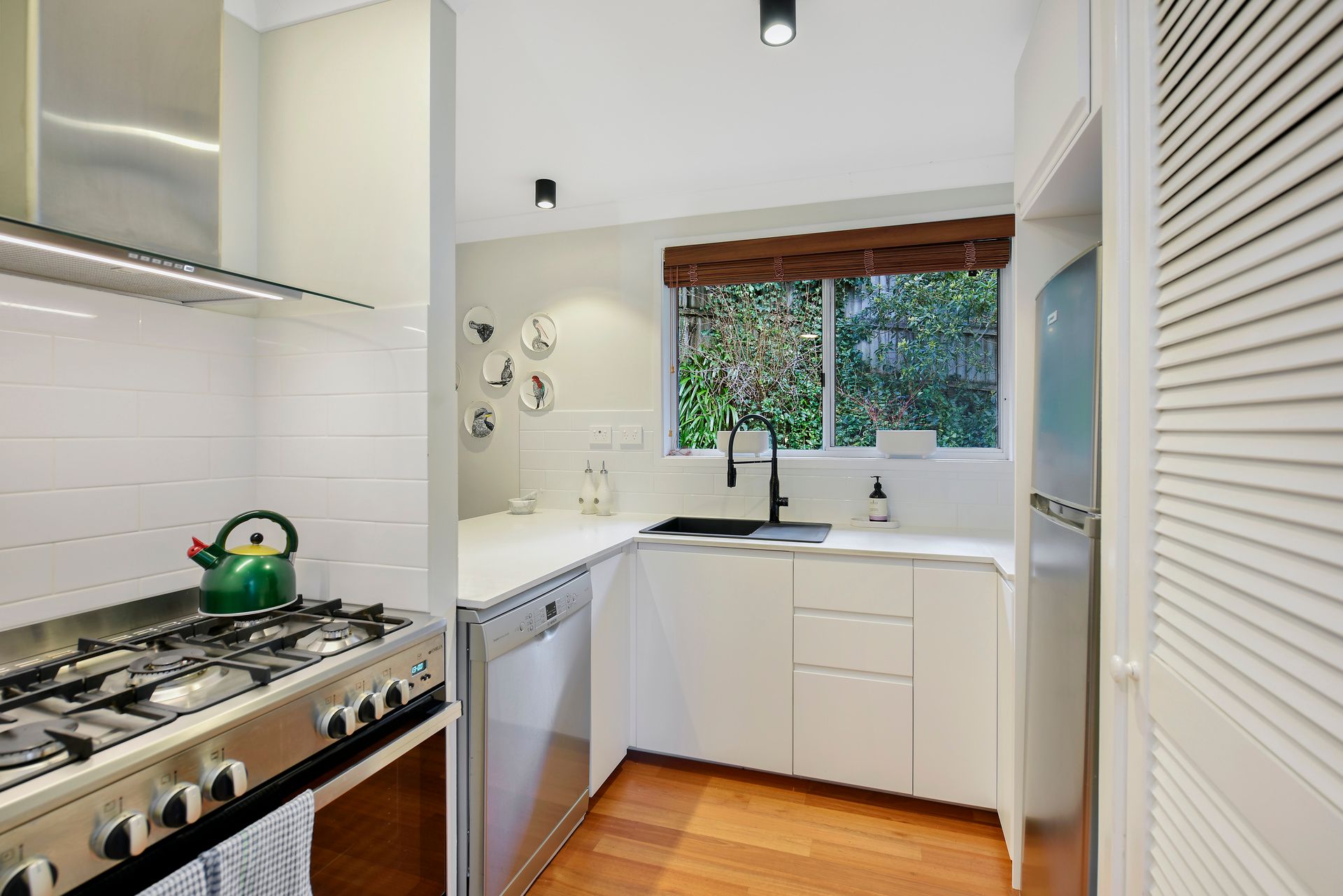 The kitchen is fully equipped with stainless steel freestanding gas cooking, microwave, fridge, dishwasher, kettle, and toaster, ideal for preparing meals during your getaway. The newly renovated bathroom features a frameless glass shower over the bath. The dining area comfortably seats six, and the lounge room offers a slow combustion fireplace, T.V., D.V.D., and Sonos sound system for cozy nights in.